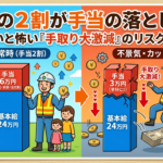 つまり、2万円上がっても手元に残る「実質的な手取り」は、約13,000円〜14,000円。