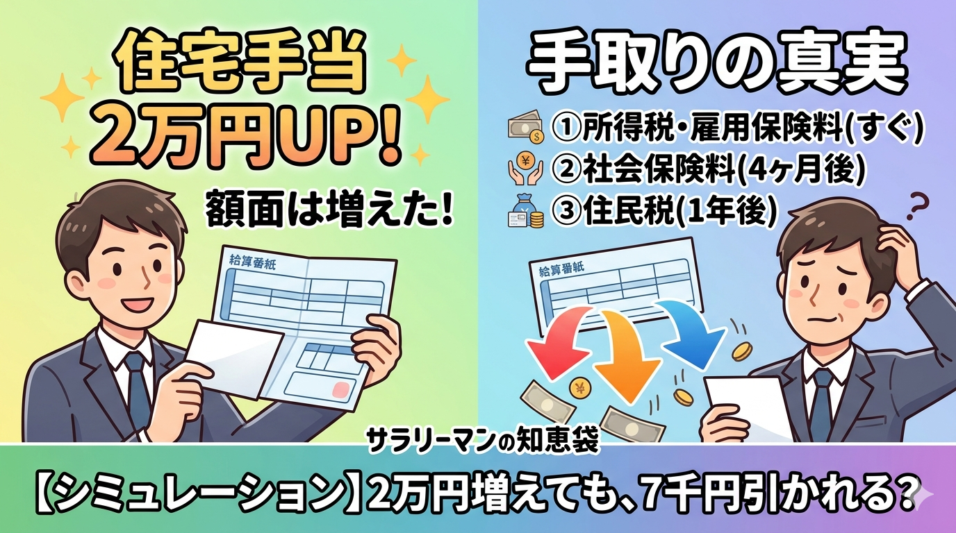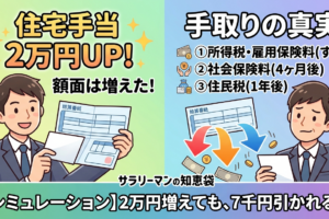 日本の平均的な会社員のモデルケースである「年収460万円」前後を想定して住宅手当が2万円増えた場合・・・