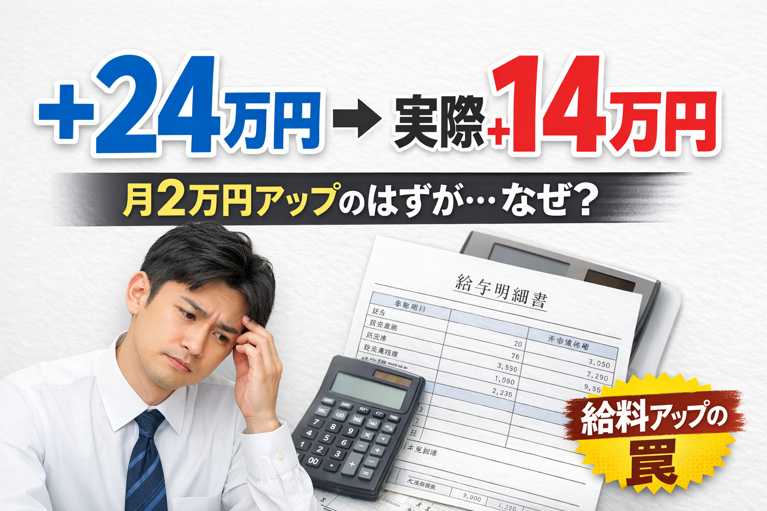 例えば、「月2万円アップ」と聞いて喜んだのに、年収は約15万円しか増えなかった・・・