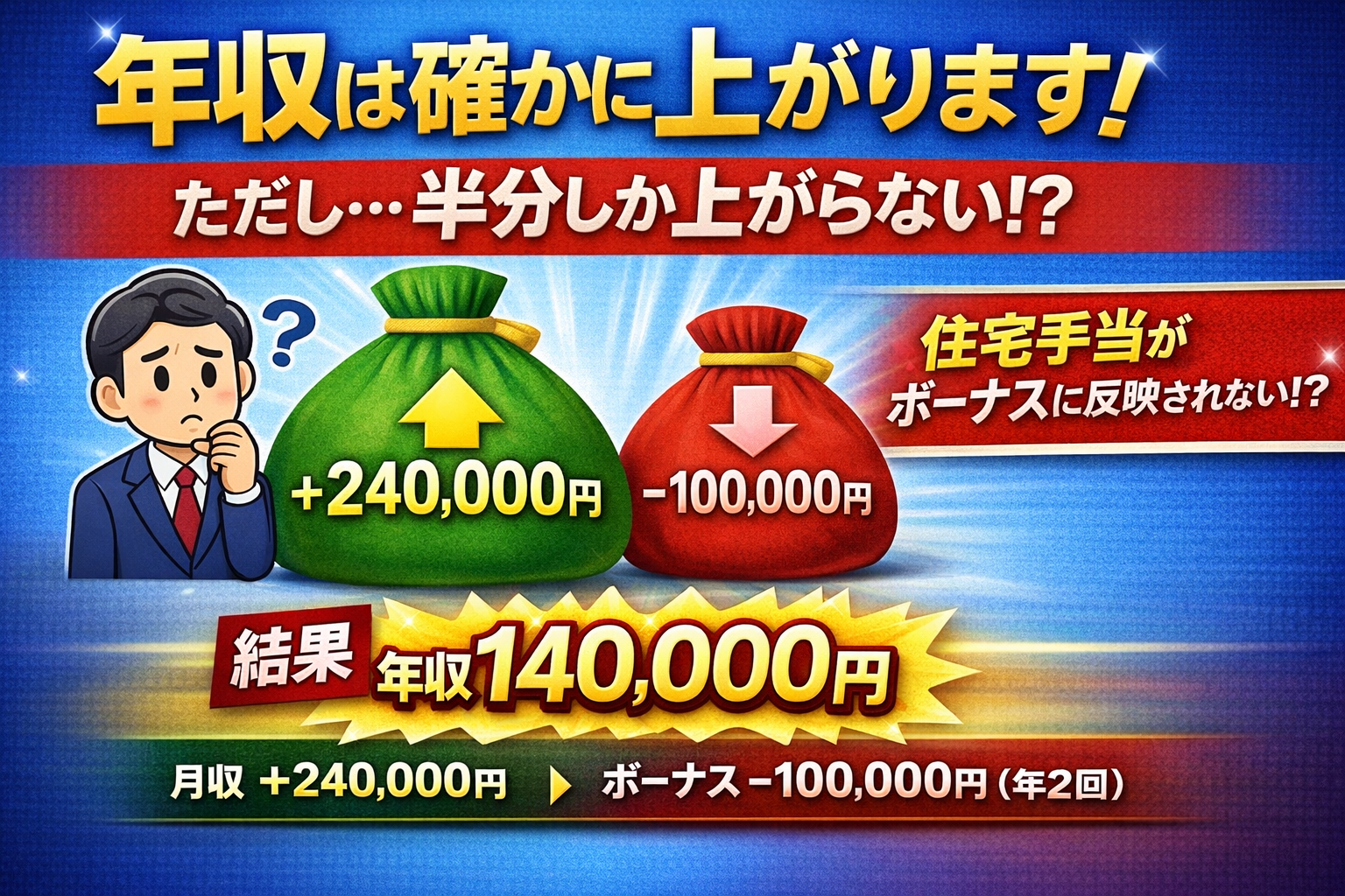 月収は大幅に上がるが年収は微増?
